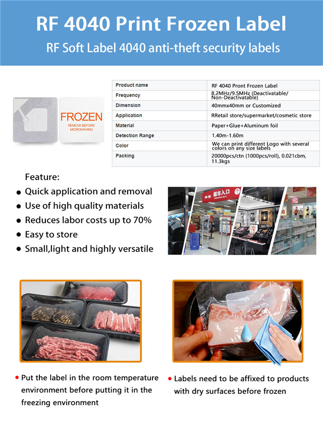 RF Soft Label 4040 Print Frozen anti-theft security labels